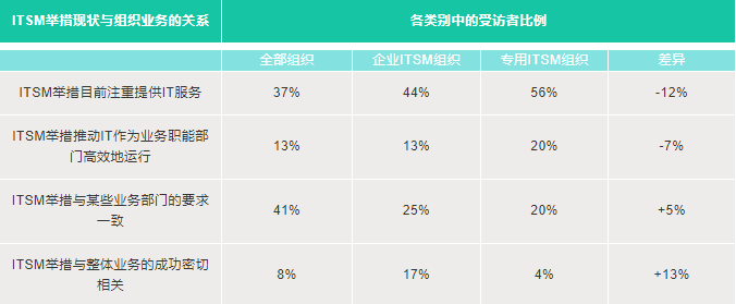 表2:ITSM舉措現(xiàn)狀與組織業(yè)務(wù)的關(guān)系