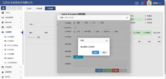 1)點擊已保存的工時,彈出對話框后點擊刪除